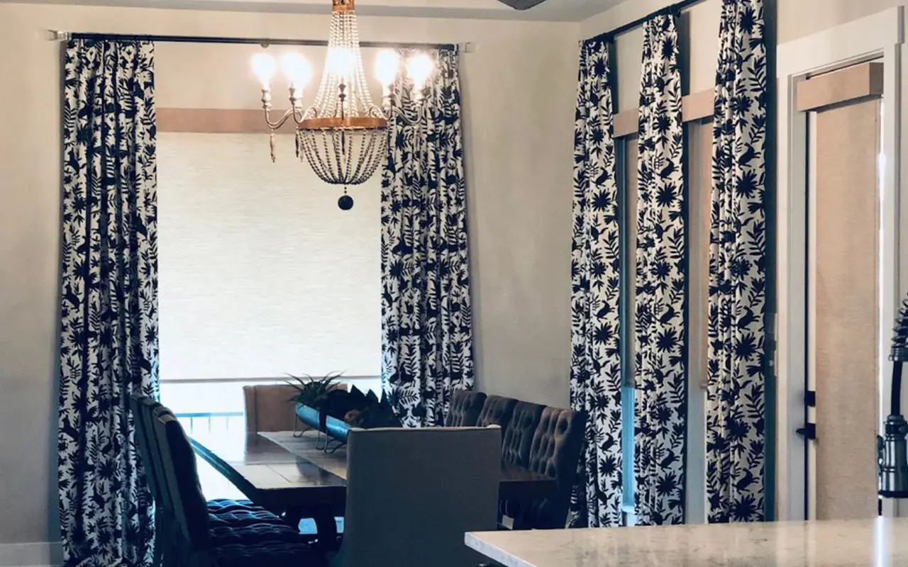 In bedrooms, valances frame blackout shades or drapery for a layered, luxurious finish, while in offices or guest rooms they provide a polished look without requiring full-length panels. Because they take up minimal space, fabric valances are also a smart solution for windows positioned above furniture or in areas where floor-length drapes aren’t practical. This makes them one of the most adaptable finishing touches in window design.