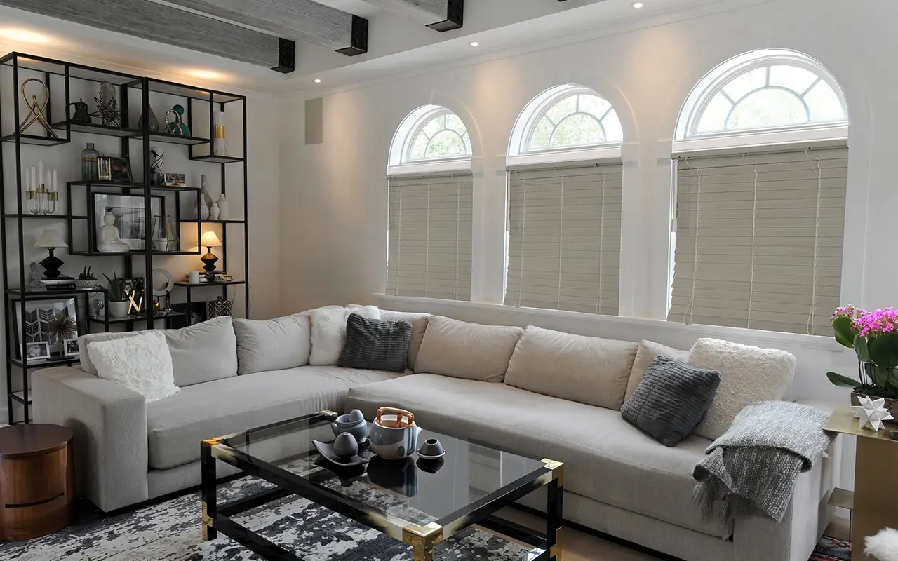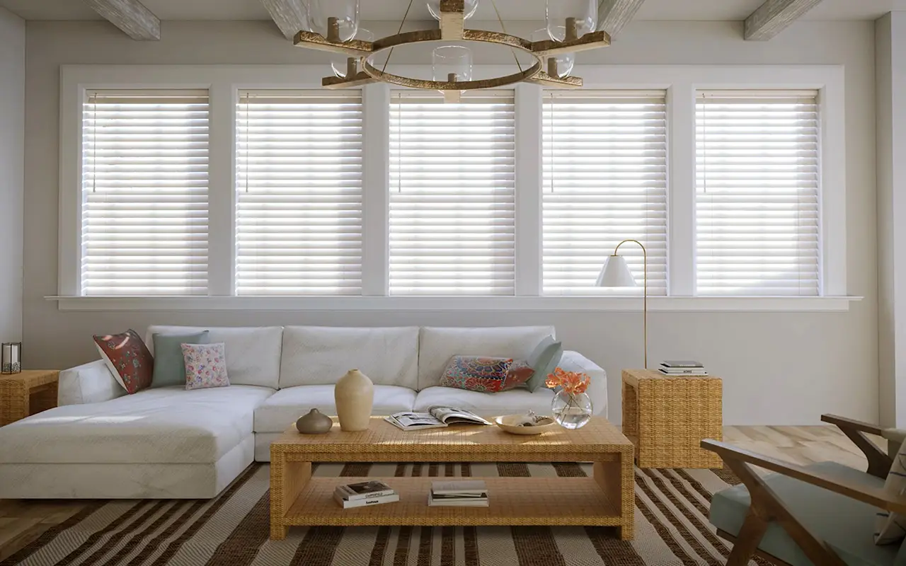 Faux wood blinds are built for lasting durability, engineered to resist moisture, warping, and everyday wear. Their resilience makes them the ideal choice for high-humidity areas like bathrooms, kitchens, and basements where real wood may not hold up as well. More affordable than genuine hardwood, faux wood blinds provide the look of natural wood at a budget-friendly price point. They’re also low-maintenance, requiring only a quick dusting or wipe with a cloth to keep them looking new. Cordless operation ensures a safer environment for households with children or pets, while motorized tilt options add the convenience of smart control through remotes, apps, or even voice assistants. Combining durability, style, and technology, faux wood blinds offer a versatile solution for any space.