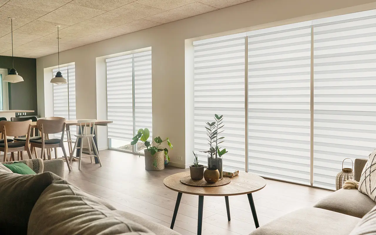 Want a modern, stylish window treatment that gives you elegant light control without complicated mechanisms? Zebra Shades, also known as dual shades or transitional shades, are a top choice for homeowners who love a sleek aesthetic with functional flexibility. At Local Shades and Blinds, we offer custom Zebra Shades from premium brands like Alta, Norman, and Lutron—designed for the way you live, work, and relax. Whether you're outfitting a contemporary home or a home office, Zebra Shades bring a clean, versatile look with layers of smart performance.